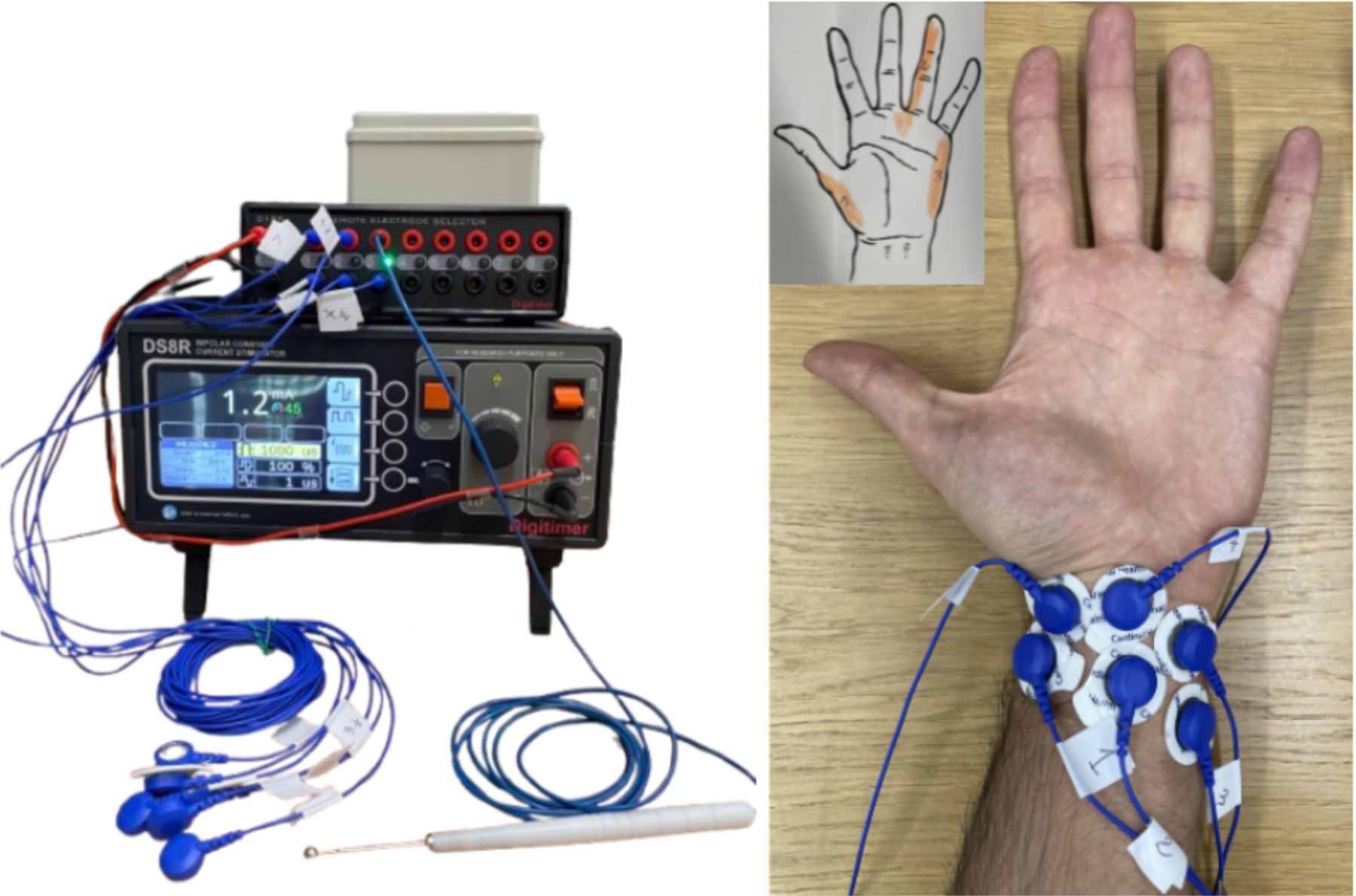 - Mapping: Mapping consist in finding the areas in the wrist, elbow or amputee’s residual limb that provoke a distal percept in the (phantom) hand. This is possible by stimulating the peripheral nerves, mainly the median and ulnar nerves. The location of the electrode will influence the strength and quality of the referred sensation